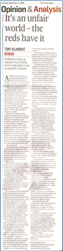 Hence in human competitive situations, redness