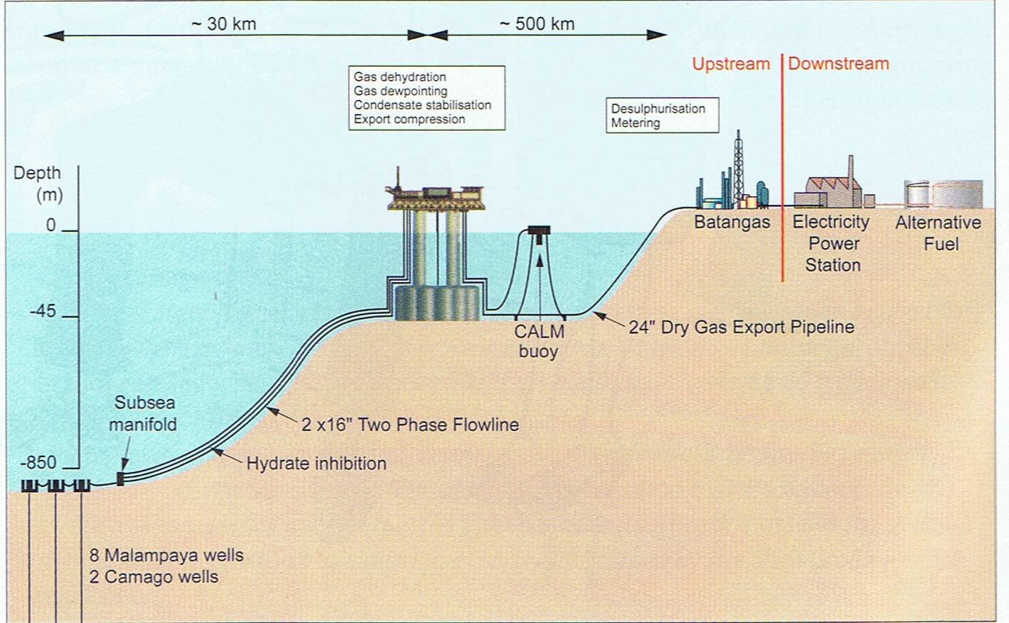 Schematic of SPEX's Malampaya development, October 2001 |